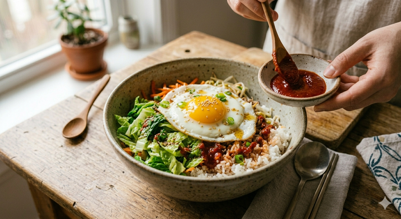 봄동 비빔밥은 어렵지 않지만 봄동을 넉넉히, 양념은 가볍게, 밥은 너무 뜨겁지 않게 맞추는 쪽이 완성도를 크게 바꿉니다.